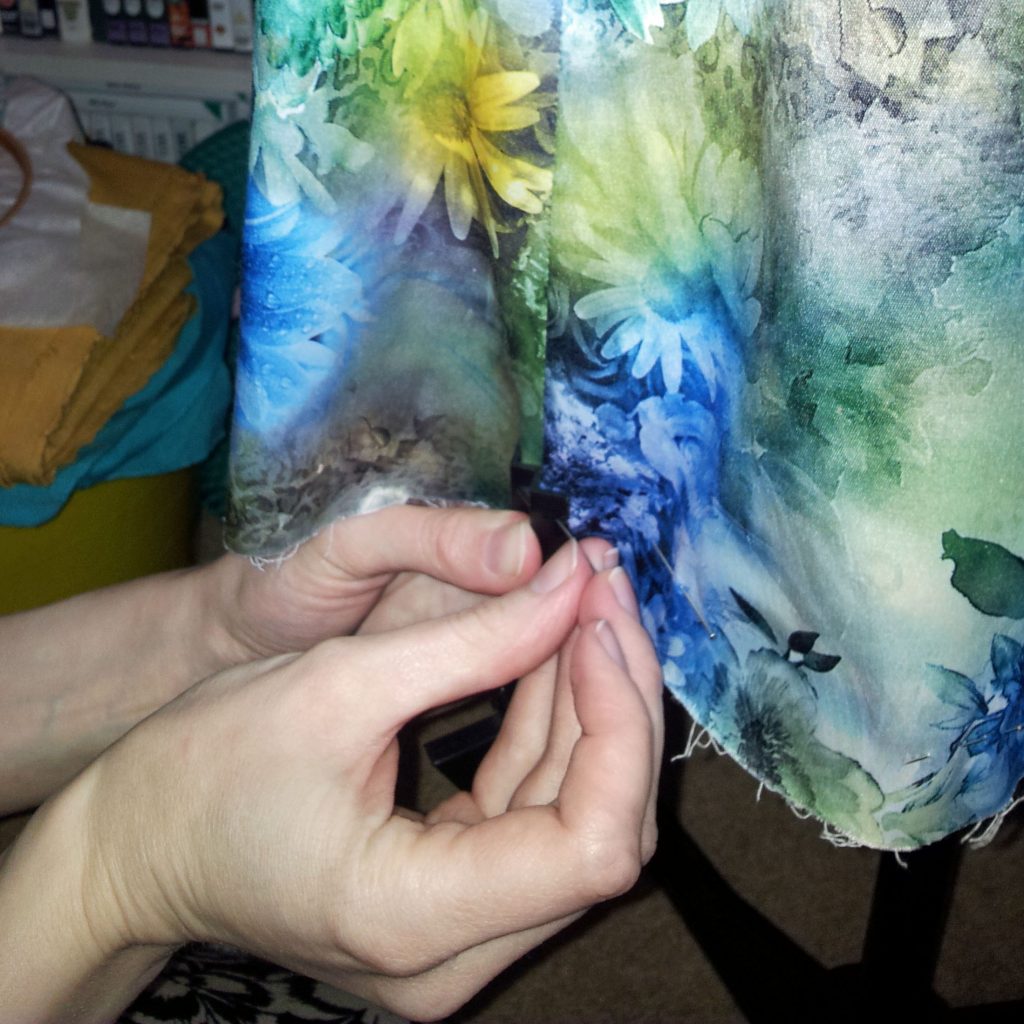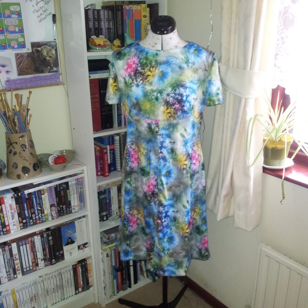 This is the first time I’ve been able to use my tailor’s dummy for one of its main purposes – to assist with hemming! It was invaluable. I pinned where I wanted the length of the dress to finish and then used the pinned line as a guide to press and hem the length.