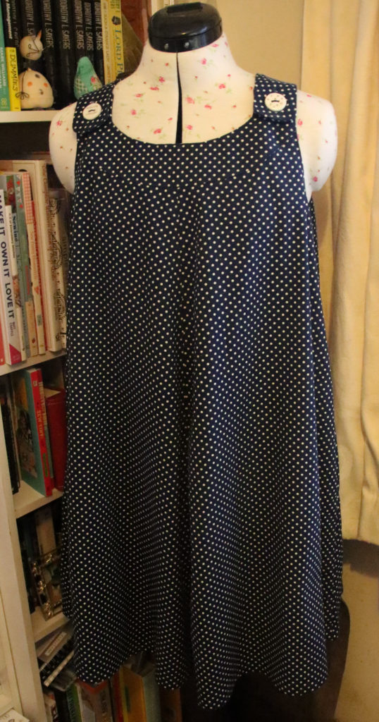 I’ve been enjoying a bit of dressmaking this month and am finally cutting into some fabrics I bought in one go for numerous projects. One piece of fabric was some navy polka dot cotton bought especially for the ivy pinafore pattern by Jennifer Lauren.
