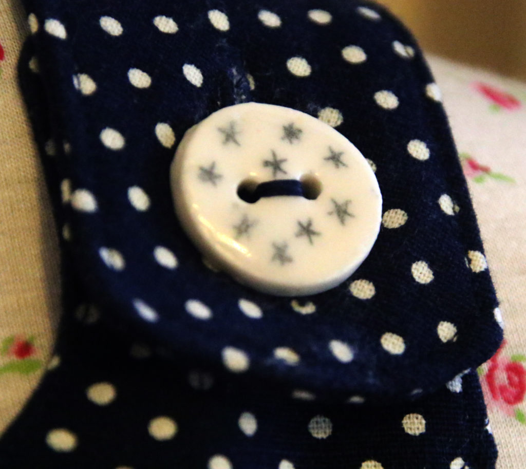 I still have my stash of ceramic buttons from taking pottery classes last year, and have only used one so far, so I wanted to use some of these if possible for the fastenings. The pattern suggests larger buttons, and I was worried that they wouldn’t be big enough. However, I left worrying about this until the button hole stage came up, and decided that my own buttons would work well. It’s a real buzz to see my own handmade buttons on a garment!