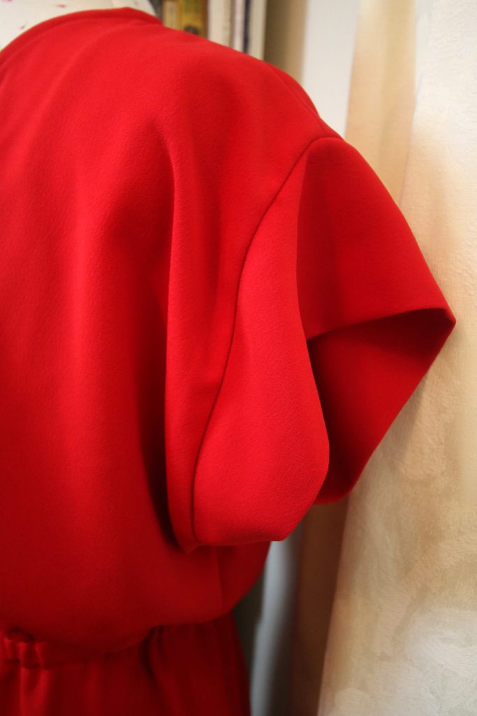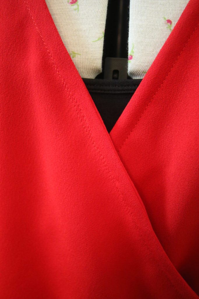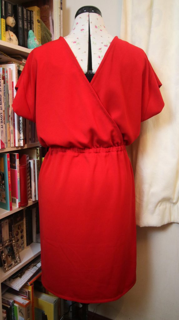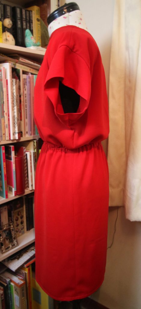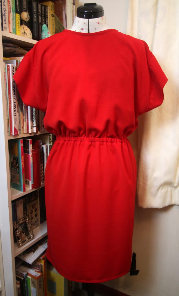 I was apprehensive about the fit, worried that it might gape too much at the back. However, it doesn’t and it fits well. The only adjustment I made was to make the length on the skirt section an inch and a half longer so that the hem sits just above the knee.