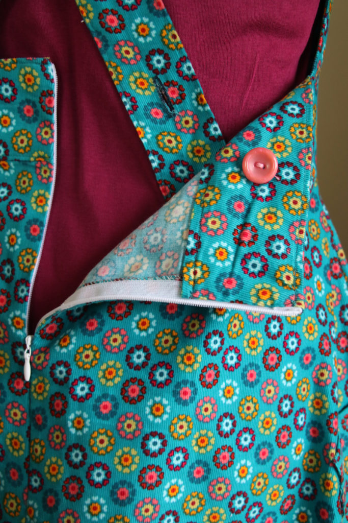 This pinafore features an A line skirt for the bottom half which I really like as it provides a flattering fit but reduces fabric consumption compared to a full circle skirt.