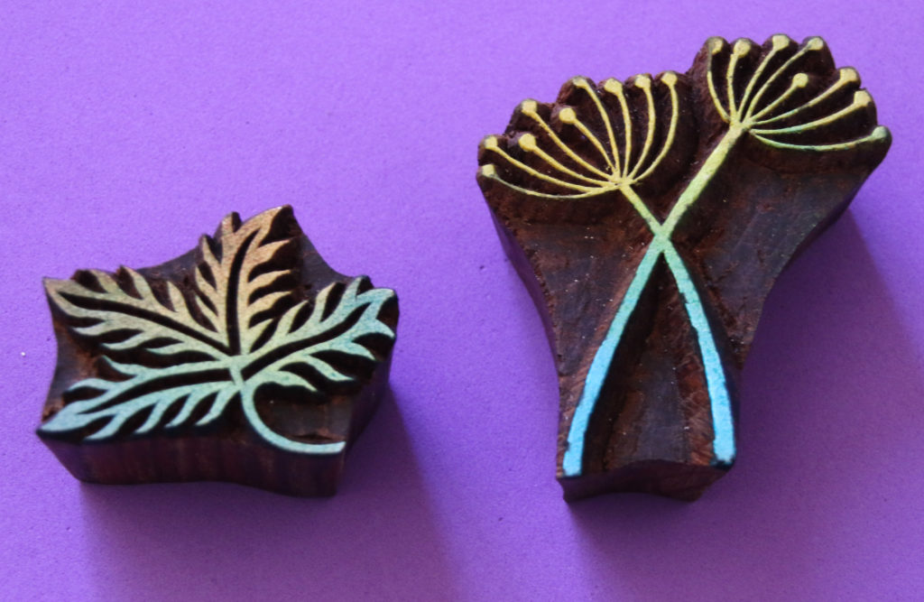 The block printing stall from The Arty Crafty place was lovely as well. When we finally managed to get up to the front and admire the blocks, we were very tempted with their £30 starter pack. However, I decided to select a couple of small blocks. They were packaged in a beautiful drawstring bag. We also found some simple leaf shapes for £1 on another stall, which we plan to try out for block printing too at some point.