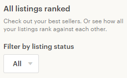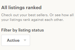 I found that it was more useful to filter to all listings rather than the active ones only, as you are then able to see why the ones you have sold are so successful. For me, I tend to make a lot of items which are ‘one offs’ so it helps to look at past items as well as the active ones.