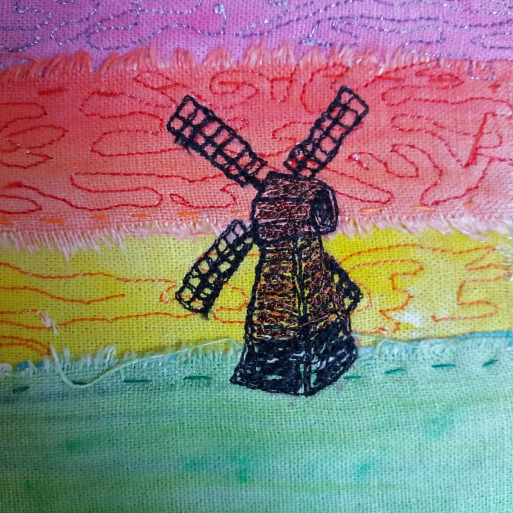 Finally, I finished by stitching the windmill on by free machine embroidery.