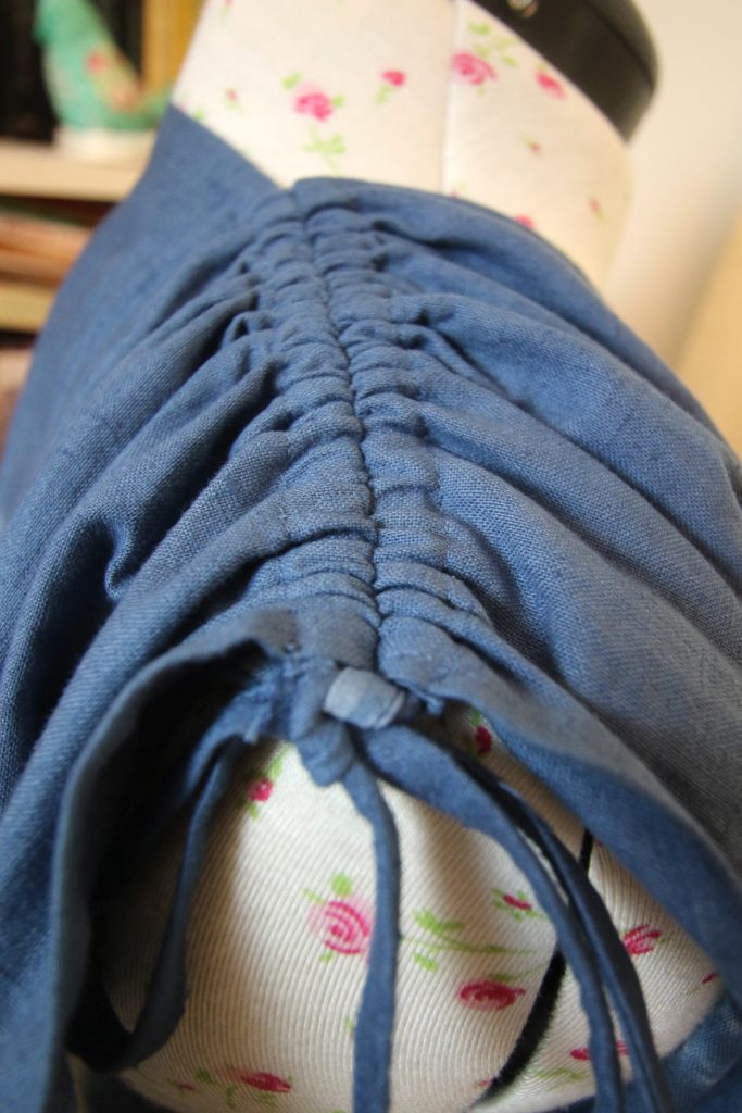 The shoulders on the version I made are rouched with fabric ties, which I like.